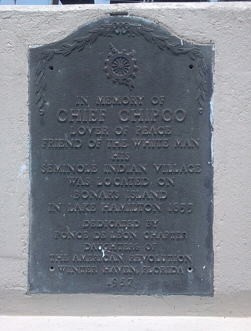 Chipco was well respected and known for having many trade partners and contacts built throughout the decades. During the Seminole War period, these trade partners would relay information to Chipco and his camp, allowing them to evade capture. In 1956 Albert Devane would research Chipco and Tallahassee, publishing his article in the Tampa Tribune. He writes that “In 1856 William Collins, son of Enoch and grandson of Samuel Knight, had established friendly relations with Chipco and his band. He heard of plans to capture Chipco and his people, [and] travelled on horseback at night and advised Chipco of the plans. A boat company of Florida militia had transported boats to a point near [Lake Hamilton], concealing them while awaiting nightfall to make the capture…. To their surprise there was no one on the island – the Indians had abandoned camp and fled” (Devane 1956).
