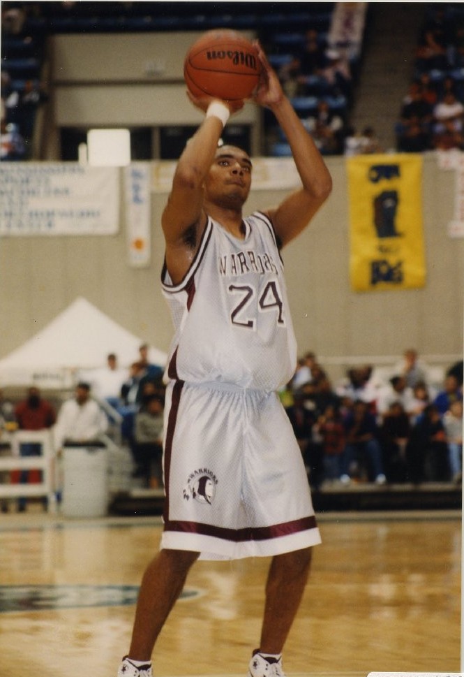 Ivan Billie taking the shot on the basketball court of the Mississippi Coliseum located in Jackson, MS. The photo was taken on March 13, 1998 at the Mississippi 2A State High School Basketball Championship between the Choctaw Central Warriors and the Calhoun City Wildcats.