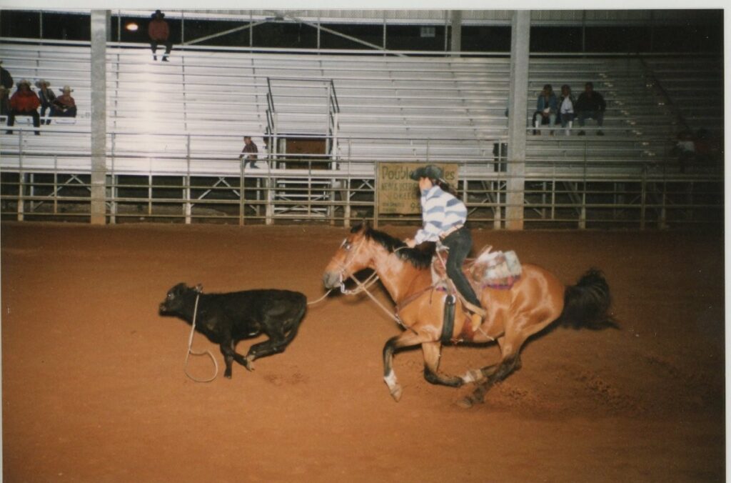 A young man competes in calf roping during a rodeo event at the Fred Smith Rodeo grounds in Brighton, FL, 1998. Fred Smith is also a Seminole Hall of Fame inductee.