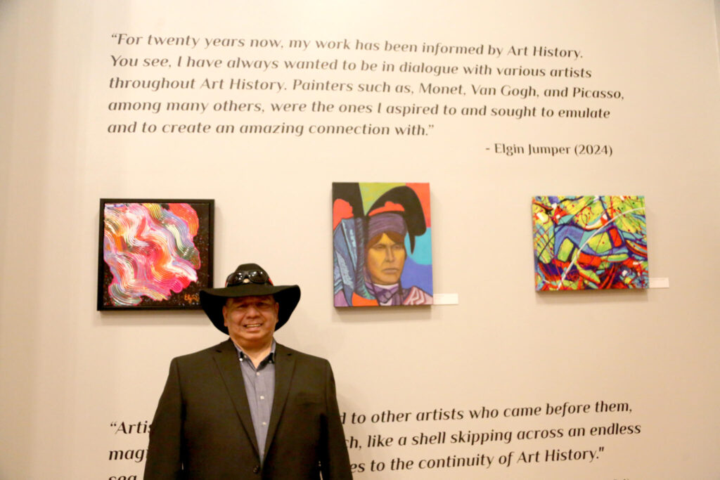 An incredible artist, Eljin Jumper’s work has been featured at the Ah-Tah-Thi-Ki Museum and other institutions a number of times. Earlier this year the Museum highlighted his works in an exhibit. The exhibit featured prominent quotes from the artist himself on the walls next to his art (above).