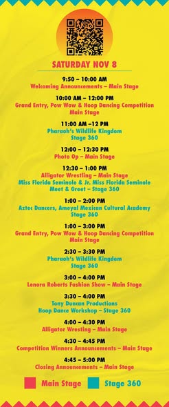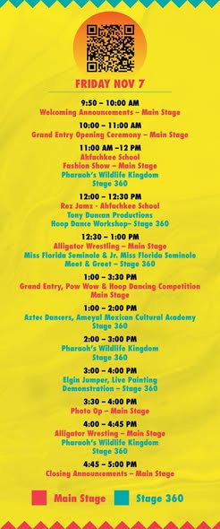Seminole artist and fashion designer Lenora Roberts is back for another exciting year! Her designs will be on display in a fashion show from 3p-4p on the Main Stage Saturday, November 8th. This year’s theme is “Flowers and Sunsets.”